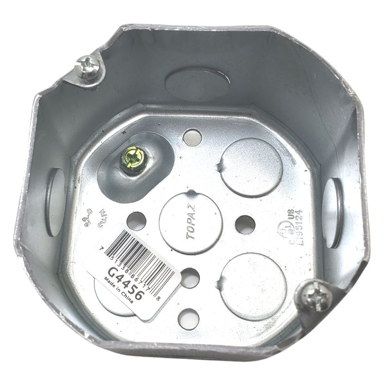 G4456 - ELECTRICAL BOX 4 INCH OCTAGON KNOCK OUTS 2-1/8 1NCH DEEP STEEL