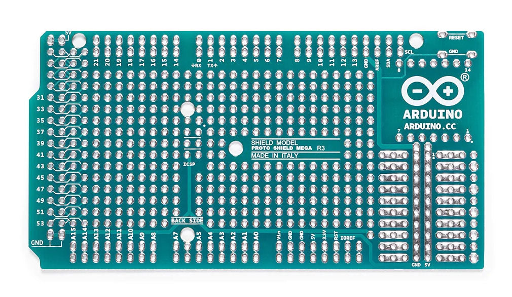 The MEGA Proto Shield Rev3 Kit allows you to move your projects from the breadboard to an Arduino MEGAcompatible PCB.