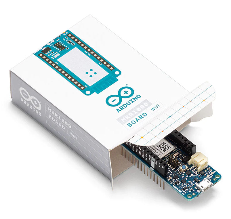 The Arduino MKR1000 is a powerful board that combines the functionality of an Arduino Zero and a handy WiFi shield. This thin board has been designed to offer a practical and costeffective solution for makers wanting to design IoT projects with minimal previous experience in networking. It is based on the Atmel� ATSAMW25 SoC (System on Chip) which is part of the SmartConnect family of Atmel wireless devices specifically designed for Internet of Things (IoT).