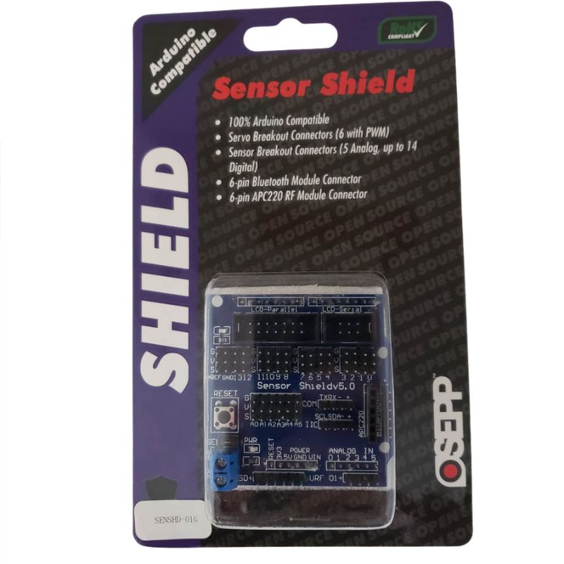 Easily connect Servo motors Sensors and Bluetooth/RF modules to your Arduino or Arduino Compatible board. This Sensor Shield provides breakout connectors for standard Servo Motors and various 3pin Sensors. A 5v DC screw terminal enables you to drive power hungry servo motors with an additional 5v DC power supply. Standard Arduino Shield form factor fits perfectly on top of the Arduino UNO and Mega.Features and Specifications: