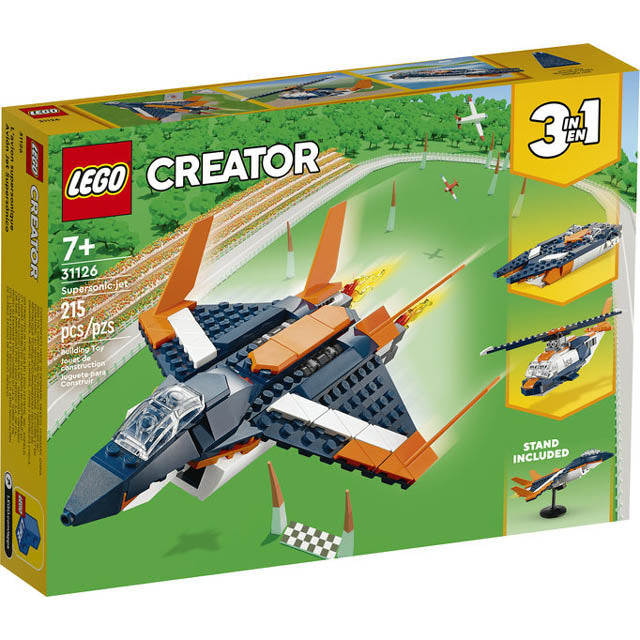 3in1 toy – Kids can indulge in creative fun with the LEGO® Creator 3in1 Supersonicjet (31126) building set featuring 3 models in 1: a jet plane a helicopter and a powerboat