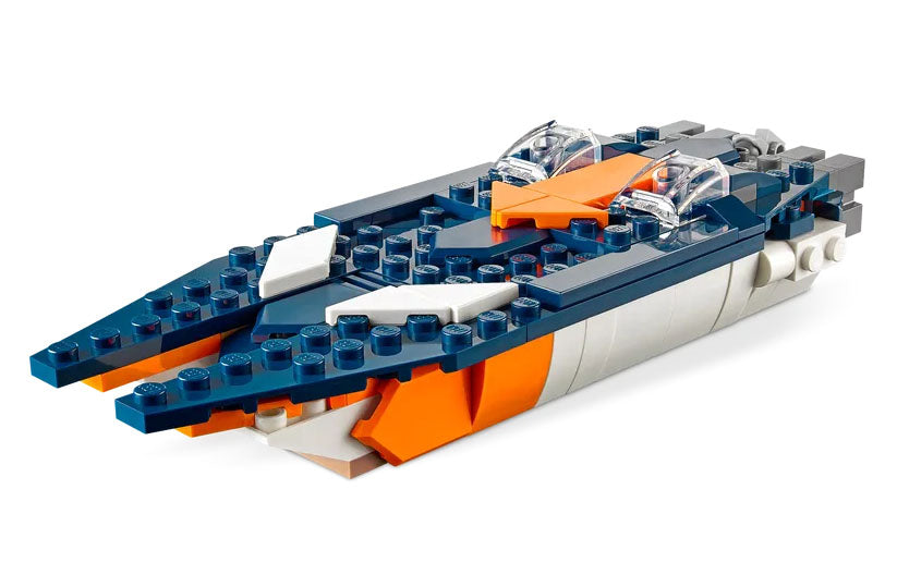 • Unlimited playtime – LEGO® fans can perform stunts in the air with the jet plane and the helicopter and race on the water with the powerboat