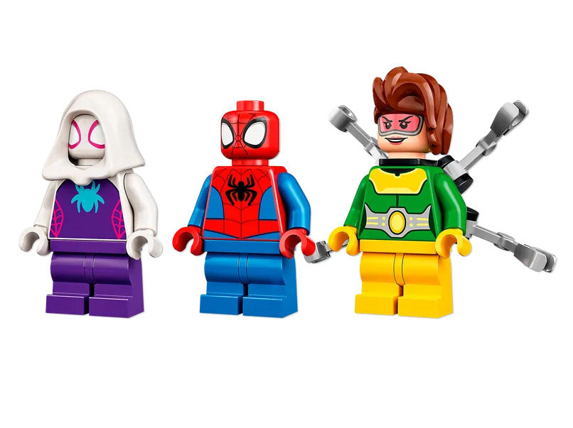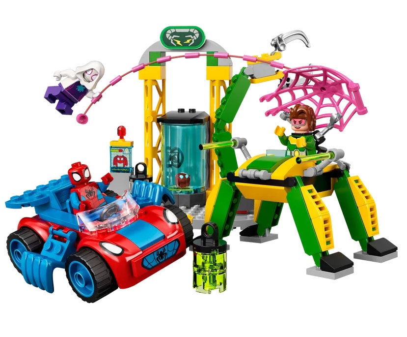 • Packed with play starters – LEGO® Marvel Spidey And His Amazing Friends SpiderMan at Doc Ock’s Lab (10783) comes with 3 minifigures a robot spider lab scene buildable truck toy and an action mech