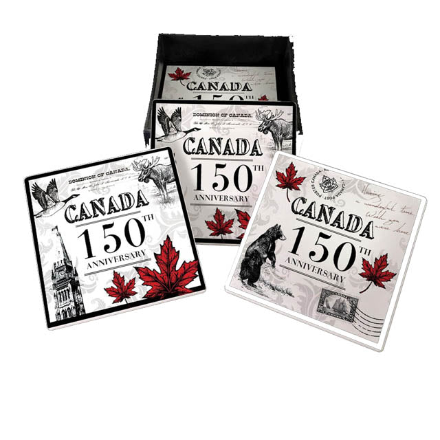 00879 - CANADA SOUVENIR COASTERS 150TH ANNIVERSARY (4 pcs/pkg)