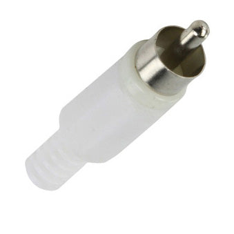 CA047 W - RCA PLUG INLINE SOL PLAST WHITE TIN STRAIN RELIEF (2 pcs/pkg)