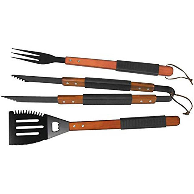 812-9024F - BBQ TOOL SET WOODEN HANDLES WITH RUBBER GRIP 3PCS/SET
