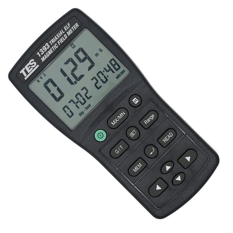 TES 1393 ElectroMagnetic Field Tester is designed to provide user a quick reliable and easy way to measure electromagnetic field radiation levels around power lines home appliances and industrial devices. The EMF tester is a cost effective handheld instrument designed and calibrated to measure electromagnetic field radiation at different bandwidths down to 50Hz/60Hz.
