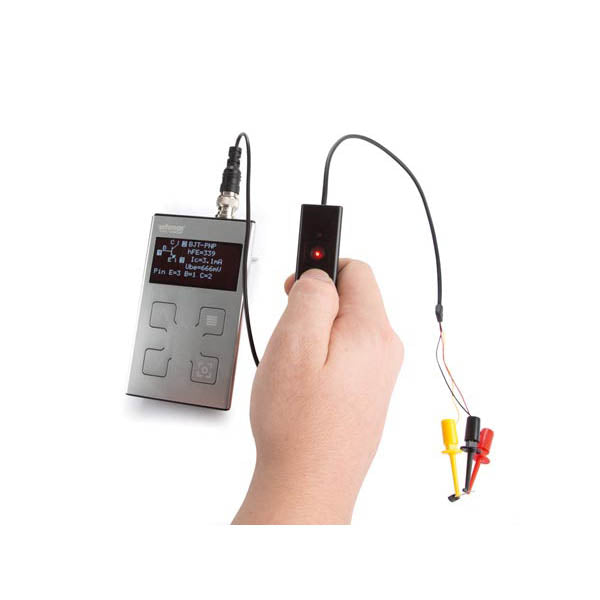 Connect this easy to use component tester to your handheld oscilloscope (HPS140MK2) and receive all useful information about resistors transistors diodes and more including their pin out identification.