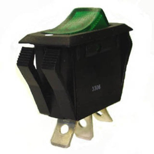 B160-R2L-BG2BM-DP - ROCKER SWITCH LIT 1P1T 15A ON- OFF 125VAC QT 13.5X28MM ACTU GRN